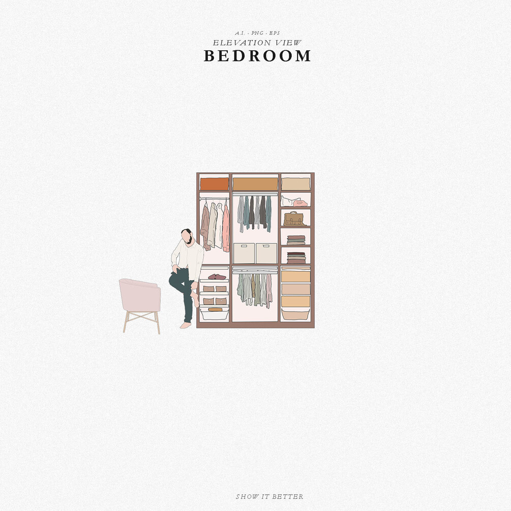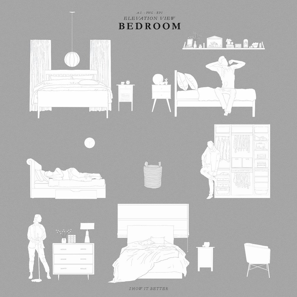 Bedroom Room illustrations for your architectural drawings.