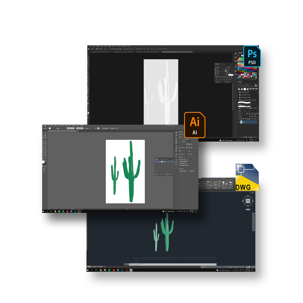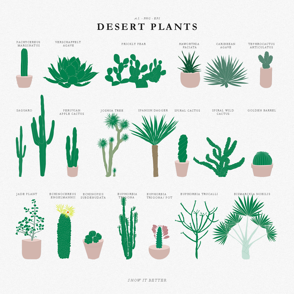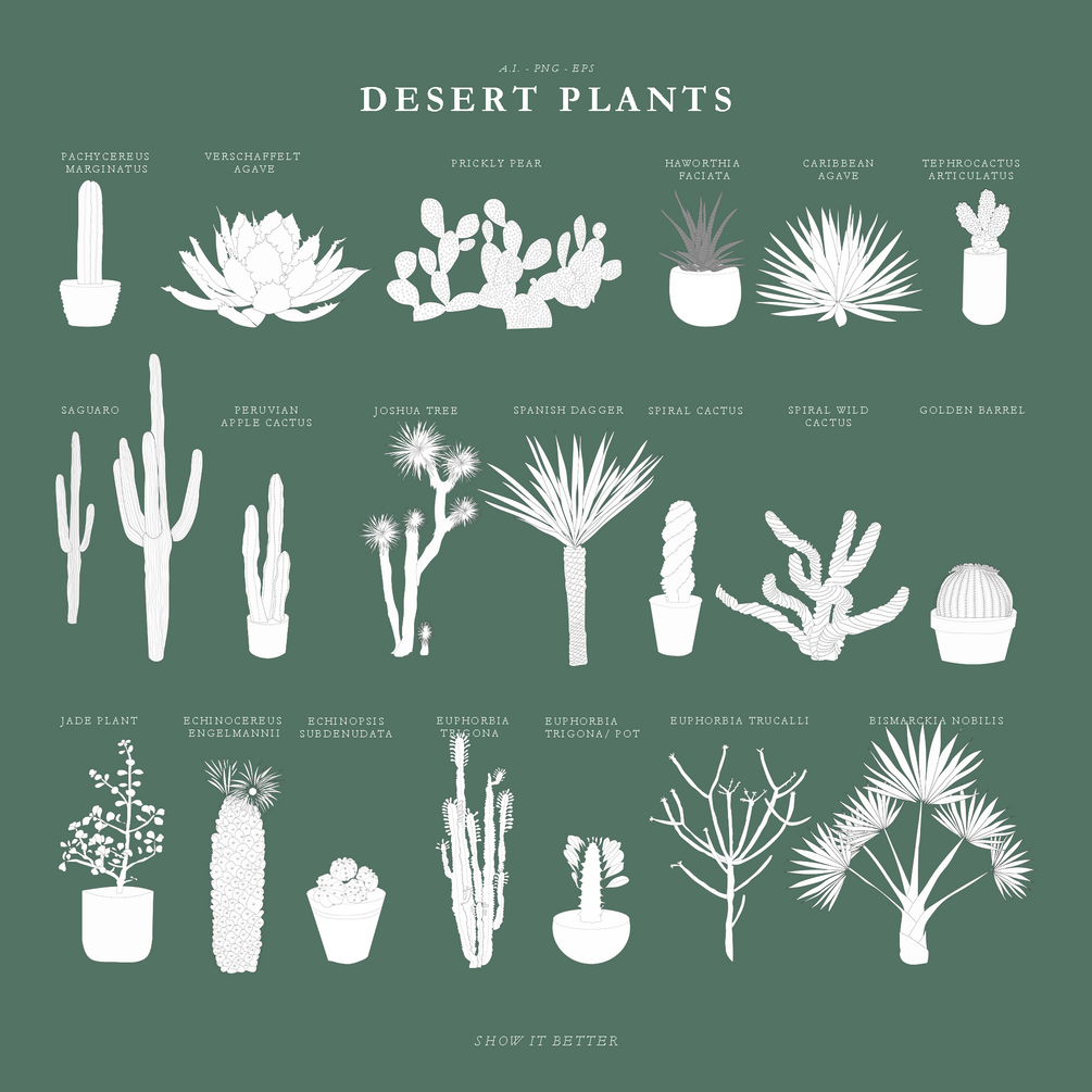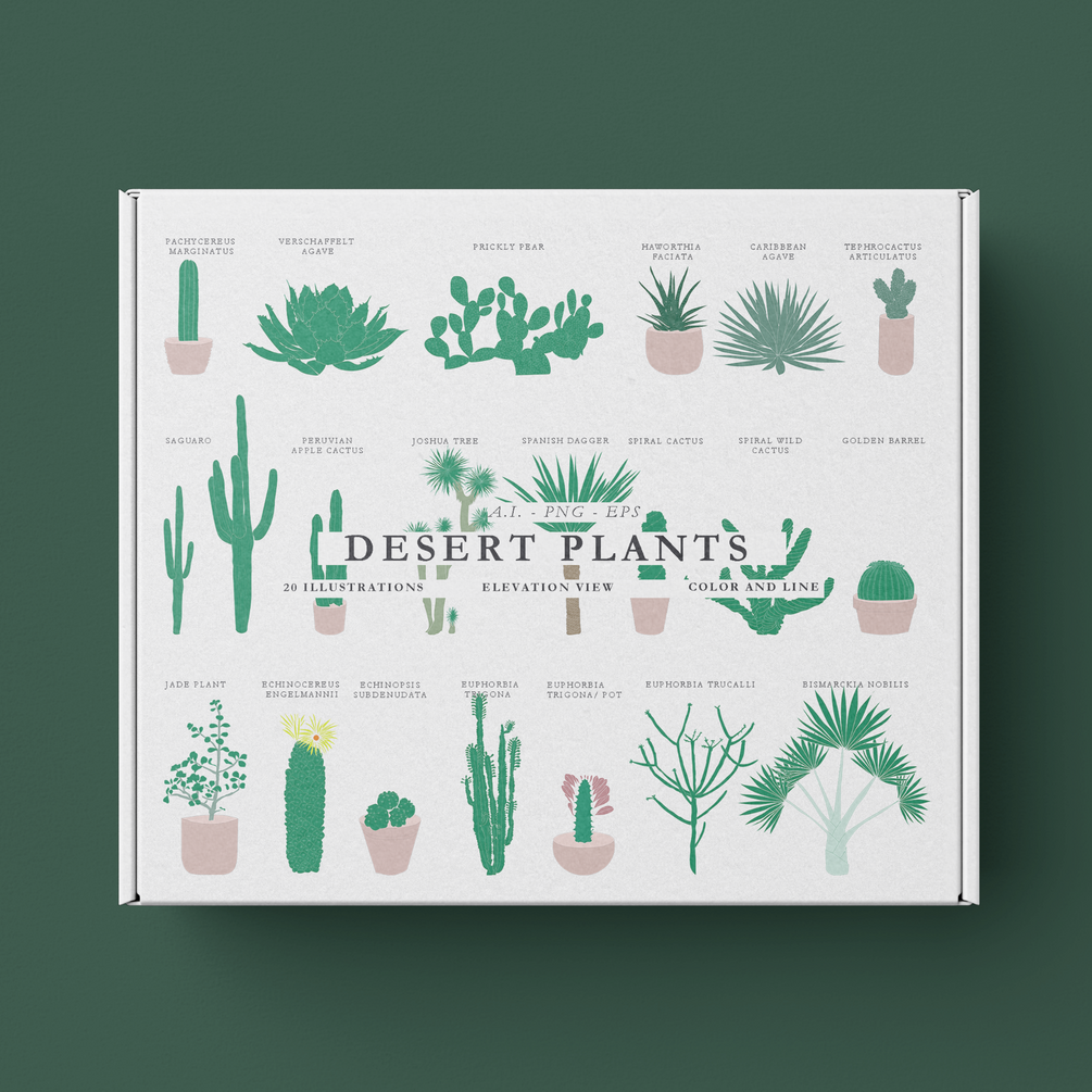 20 Illustrated desert plants. Each comes with a line only version.
