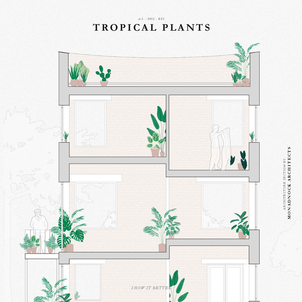 Flat vector plant drawings for your architecture & design projects