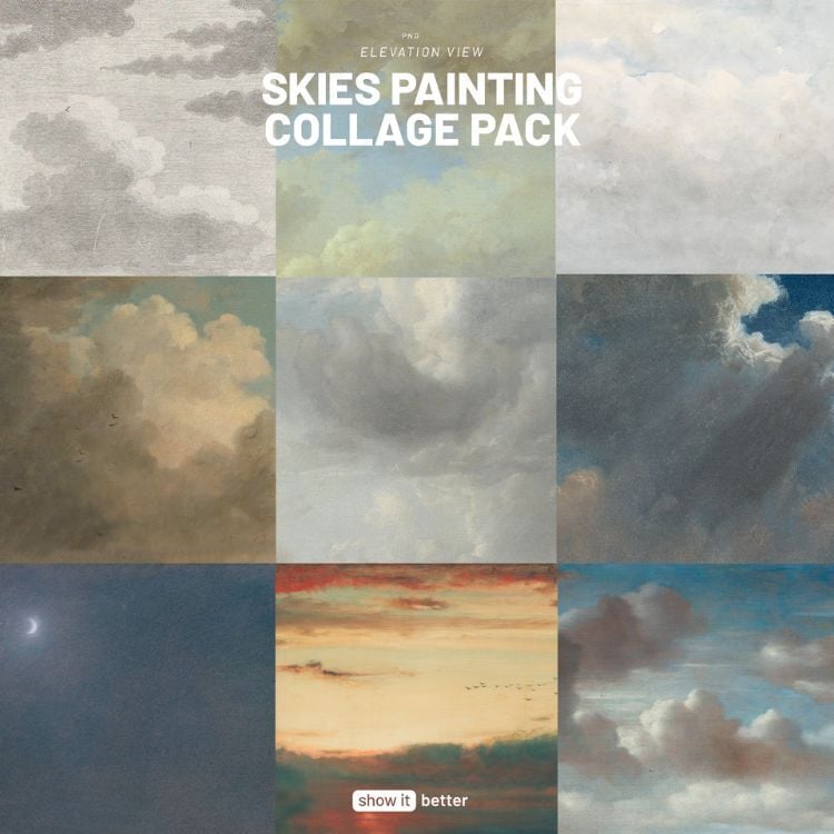 This pack contains 30 sky textures from classical landscape paintings. The textures can be used in collages, illustrations, and architectural drawings.