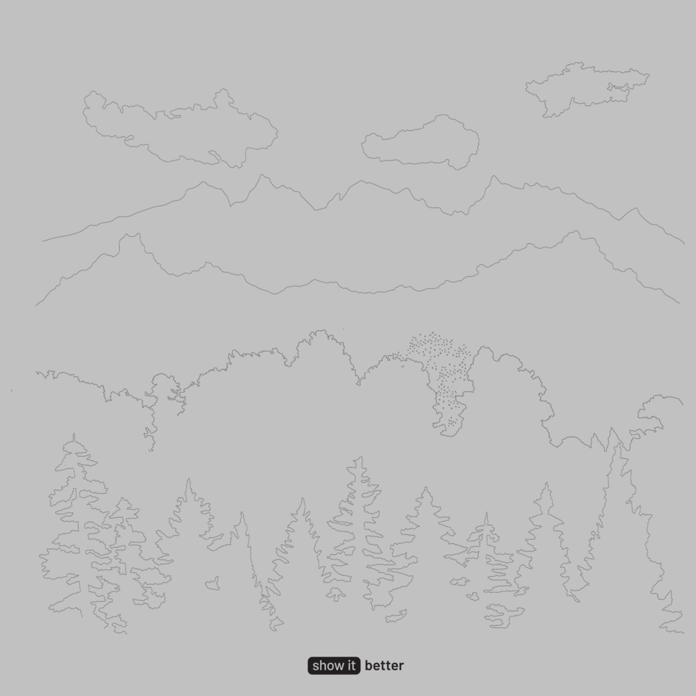- Background silhouettes (clouds, forest lines, mountain ridges)