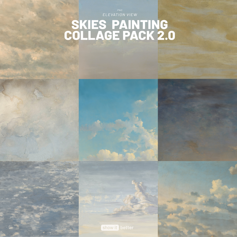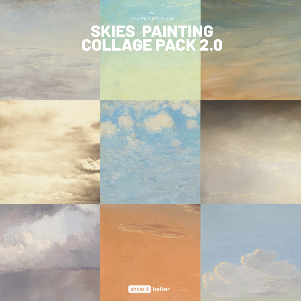 This pack contains 30 MORE sky textures from classical landscape paintings. The textures can be used in collages, illustrations, and architectural drawings. This is the second edition of our first, Sky Textures.
