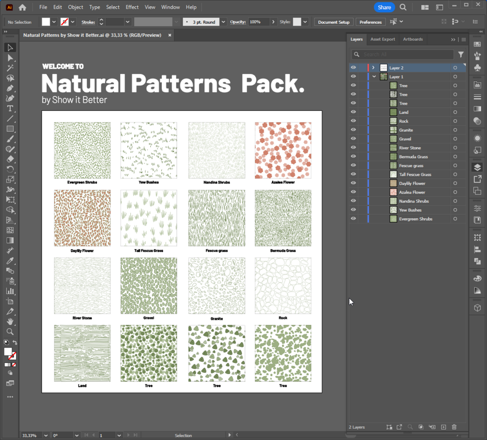 Introducing the Natural Patterns Pack by Show it Better—a versatile collection of 16 hand-crafted patterns designed to bring life, texture, and realism to your architectural drawings and graphic compositions.